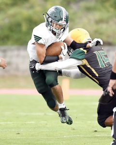 “I talked to the Kohala coach today because Kohala — you know the Big Island teams Pahoa and Ka’u, the former eight-man teams that have stepped up to 11-man — just trying to check with him, see what his numbers are,” Kahale said. “They are low, too. He said that them and Honokaa have the smallest numbers, but Ka’u and Pahoa seem to have 30-plus.”