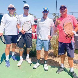 Rick Kepler (from right) poses for a photo with Canadian playing partner Craig Hiddleston, and semifinal opponents Robert Sjoholm and Gordon Hammond at the Level 2 Wilson World Tennis Classic in Palm Desert, Calif., last week. Kepler and Hiddleston defeated Hammond and Sjoholm 6-3, 6-1. Photo courtesy of Rick Kepler