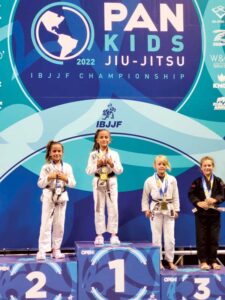 Kendall Grove was a bit torn during the Female Pee-Wee 3 Light Division final of the Pan Kids IBJJF Jiu-Jitsu Championships on Saturday night in Kissimmee, Fla.