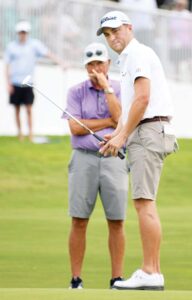 - Justin Thomas, a two-time winner at Kapalua, watches his long putt on the 18th hole Wednesday along with his father, Mike Thomas.