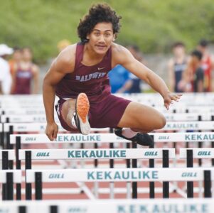 Na Alii’s Deichert and Baldwin’s Joseph Randolph both ran the fastest times in the 100 meters — Deichert clocked in at 12.28 in the girls heats, while Randolph looked every bit the defending champion while running 10.74 in the boys heats. King Kekaulike’s Jake Yoro took the eighth spot in the boys 100 with a 11.02.