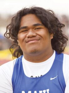 To kickstart the championship weekend, Maui High’s Aizek Lakalaka finished third in the boys discus throw with a mark of 143 feet, 9 inches on Friday morning, claiming the Maui Interscholastic League’s first medal. Kamehameha Kapalama’s Kealiikupono Dikilato won gold with a toss of 161-2, and Tobey Lau of Kamehameha Hawaii was second at 148-9.