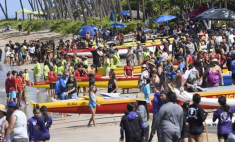 “Every year I kind of say the same thing, but you know, it’s basically the big family of canoe paddling, right? Because we have kids that are 5 years old to paddlers that are in their 80s,” he said. “And so you have your keiki and your kupuna and you have your aunties and uncles and even though they paddle vigorously against each other, it’s one big happy family in the end.”