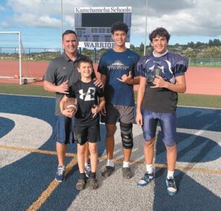Keola Abreu was beaming with pride on Wednesday at practice on the Kanaiaupuni Stadium turf, with all three of his sons in attendance.