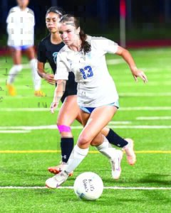 - Baldwin’s Olivia Ellis controls a first-half ball Wednesday night.