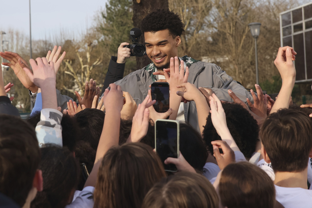 LE CHESNAY, France (AP) — Victor Wembanyama stood on the center stripe of a new outdoor court in his hometown, his arms outstretched to their full 8-foot wingspan as he posed for a slew of photographers.