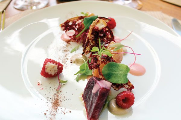 The top-selling appetizer, or antipasti, on the wellness menu is warm beetroot salad with walnut and miso paste and Sparrow Lane raspberry gastrique with beetroot chips and sorrell leaf.