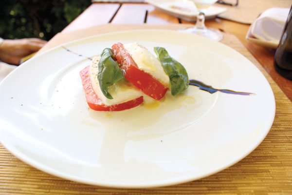 Caprese salad with Haiku vine-ripened tomatoes and buffalo mozzarella • The Maui News / CARLA TRACY photo