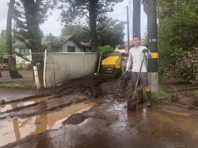 Kihei resident Justin Fetalvero shoveled more than a foot of mud from his family’s driveway along South Kihei Road near Kauha’a Street. Fetalvero said it’s not the first time he’s cleared the driveway, but the flooding was different this time.