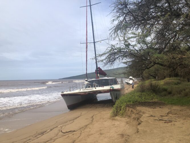 Two vessels were aground along the beach at North Kihei Road, including a monohull motorboat and the 50-foot catamaran Winona.
