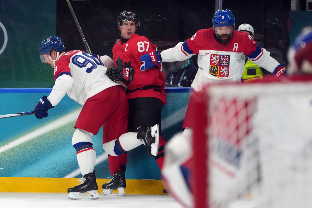 Crosby’s right leg appeared to buckle when bracing for contact on a big hit from Czechia defenseman Radko Gudas a few minutes into the second. Ondrej Palat hit Crosby and sent him sliding into the boards just before that, with no penalty called despite the puck not being in the vicinity.