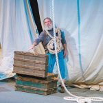 The brilliant script by Matthew Spangler and Benjamin Evett certainly allowed for a great actor to shine, but Oh Boy! Productions had to find the actor that could mesmerize all alone on stage for an entire evening. Deeply rooted in character, Kane deftly navigated the ever-changing moods of the Mariner, while facilitating his own set changes, prop placement, hoisting the sails of the ship, swabbing the deck and hanging the deceased albatross around his neck in penance.