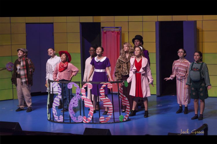 Anuhea Vida (from left), Heather Robinson, Kanoa Goring, Rachel Robinson, Sachiko Pierner, Magdalena McManus, Jeremiah Webb, Dakota Welch, Makeda Wilmeth and Sloan Beerer get ready to tour Willy Wonka’s Chocolate Factory in Maui OnStage Youth Theater’s production of “Willy Wonka Kids.”
