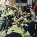 - A crowded hip-hop bar in downtown Boston during Plant Nite where people learn the craft of terrarium building. — AP photo