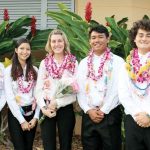 Wailuku – Graduating seniors Marlou Gabumpa (from left), Katelynn Martin, Katherine Stevens, Romeo Cabading and Jake Thomas after their last Maui Youth Philharmonic Orchestra Spring Concert held at H.P. Baldwin High School auditorium, which was dedicated to Mr. Lance Jo, cofounder and former director, who died recently; Wendy Isbell photo.