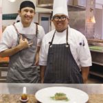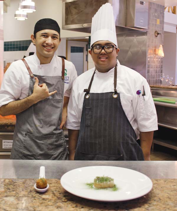 The Leis Family Class Act is winding down for the semester at the University of Hawaii Maui College’s Paina Building. Behind the counter in the kitchen are Kainalu Marquez (left, the son of former instructor Ben Marquez), and graduate A.J. Arellano. The Class Act’s final dinner of the semester will be held at 6 p.m. Wednesday. The Maui News / CARLA TRACY photo