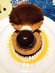 The Polynesian Black Pearl, with lilikoi chocolate mousse, is served in a pastry seashell. AYA GANZ photo
